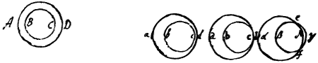 For confirmation of all this I need alledge no more yn that it is mathematically demonstrable from my former Principles. But yet I shall add that they which please to take the pains, may by the Testimony of their senses be assured that these explications are not Hypotheticall but infallibly true & genuine. For in a dark Room by viewing these Rings through a Prism by reflextion of the severall Prismati colours wch an Assistant causes to move to & fro upon a wall or paper from whence they are reflected, whilst the spectators eye, the Prism & Object-glasses (as in the 13 observation) are placed steddy: the position of ye circles made successively by the severall colours will be found such in respect of one another as I have described at abcd, or abcd or αβγδ. And by the same Method, the truth of ye {explications} {of}the other Observations, is to be examined.