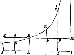 BADE sumptum ad contrarias partes rectæ AB. Asymptotis rectangulis AC, CH, per punctum B describatur hyperbola secans perpendicula DE, de in G, g; & corpus ascendendo tempore DGgd describet spatium EGge, tempore DGBA spatium ascensus totius EGB; tempore ABKI spatium descensus BFK, atque tempore IKki spatium descensus KFfk; & velocitates corporis (resistentiæ medii proportionales) in horum temporum periodis erunt ABED, ABed, nulla, ABFI, ABfi respective; atque maxima velocitas, quam corpus descendendo potest acquirere, erit BACH.