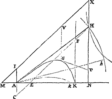 Corol. 2. Idem consequitur etiam de spatio quod in ascensu describitur. Nimirum quod spatium illud omne sit ad spatium, uniformi cum velocitate AC eodem tempore descriptum, ut est area ABnk ad sectorem ADt.
