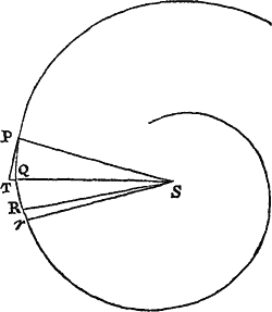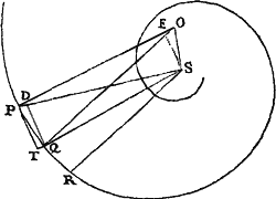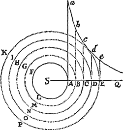 linearum Aa, Bb, Cc, Dd, Ee: id est (si ad constituendum medium uniformiter fluidum, numerus orbium augeatur & latitudo minuatur in infinitum) ut areæ hyperbolicæ his summis analogæ AaQ, BbQ, CcQ, DdQ, EeQ, &c. Et tempora periodica motibus angularibus reciproce proportionalia erunt etiam his areis reciproce proportionalia. Est igitur tempus periodicum orbis cujusvis DIO reciproce ut area DdQ, hoc est, per notas curvarum quadraturas, directe ut quadratum distantiæ SD. Id quod volui primo demonstrare.