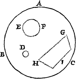 Cas. 3. Ponamus denique quod motus cujuscunque generis propagetur ab A per foramen BC: & quoniam propagatio ista non fit, nisi quatenus partes medii centro A propiores urgent commoventque partes ulteriores; & partes quæ urgentur fluidæ sunt, ideoque recedunt quaquaversum in regiones ubi minus premuntur: recedent eædem versus medii partes omnes quiescentes, tam laterales KL & NO, quam anteriores PQ, eoque pacto motus omnis, quam primum per foramen BC transiit, dilatari incipiet & inde tanquam a principio & centro, in partes omnes directe propagari. Q.E.D.