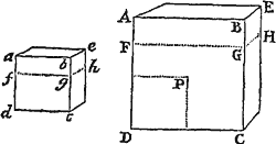 <245>Cas. 3. Ponantur latera A, B, C sibi mutuo semper æqualia; & ipsius , id est rectanguli AB, momentum erit , ipsius autem , id est contenti ABC, momentum erit . Et eodem argumento momentum dignitatis cujuscunque est . Q.E.D.