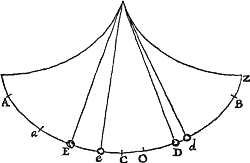 infima B, D, F æquentur duplæ penduli longitudini; partes altissimæ A, C, E, tempore oscillationis unius evadent infimæ, & tempore oscillationis alterius denuo ascendent. Igitur inter transitum undarum singularum tempus erit oscillationum duarum; hoc est, unda describet latitudinem suam, quo tempore pendulum illud bis oscillatur; sed eodem tempore pendulum, cujus longitudo quadrupla est, ideoque æquat undarum latitudinem, oscillabitur semel. Q.E.I.