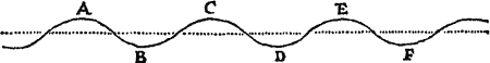 Undarum latitudinem voco mensuram transversam, quæ vel vallibus imis, vel summis culminibus interjacet. Designet ABCDEF superficiem aquæ stagnantis, undis successivis ascendentem ac descendentem; sintque A, C, E, &c. undarum culmina, & B, D, F, &c. valles intermedii. Et quoniam motus undarum fit per aquæ successivum ascensum & descensum, sic ut ejus partes A, C, E, &c. quæ nunc altissimæ sunt, mox fiant infimæ; & vis motrix, qua partes altissimæ descendunt & infimæ ascendunt, est pondus aquæ elevatæ; alternus ille ascensus & descensus analogus erit motui reciproco aquæ in canali, easdemque temporis leges observabit: & propterea (per prop. XLIV.) si distantiæ inter undarum loca altissima A, C, E &