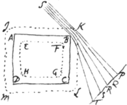 dense body whether opake or transparent, EFGH the outside of the uniform æther which is within it, IKLM the inside of the uniform æther which is without it; & conceive the æther which is between EFGH and IKLM to run through all intermediate degrees of density between that of the two uniform æthers on either side. This being supposed, the rays of the sun SB, SK, which pass by the edge of this body between B & K, ought in their passage through the unequally dense æther there, to receive a ply from the denser æther which is on that side towards K, & that the more by how much they pass nearer to the body, & thereby to be scattered through the space PQRST, as by experience they are found to be. Now the space between the limits EFGH & IKLM I shall call the space of the æther's graduated rarity.