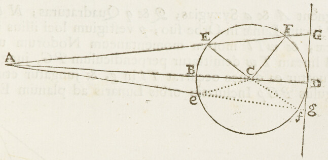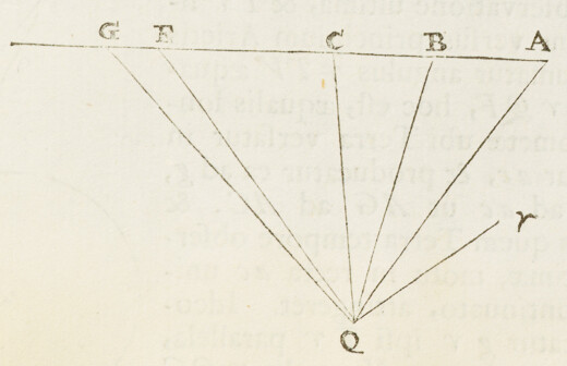 Die Veneris Feb. 25. St. vet. Hor. P. M. Cometæ in p existentis distantia a stella E erat minor quam , major quam , adeoque æqualis proxime; & angulus ApE nonnihil obtusus erat, sed fere rectus. Nempe si demitteretur ad pE perpendiculum ab A, distantiæ Cometæ a perpendiculo illo erat .