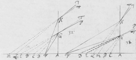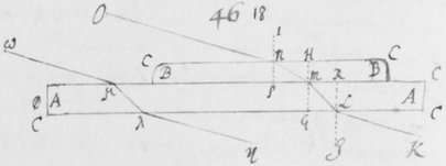 [44]In experiendis hisce notari poterit quòd quo vicinius anteriori Prismati ABC sive quò remotiùs à pariete HI collocetur Prisma posterius αβκ imagines PT ac πτ co magis ab invicem distantes, etiam ad se magis inclinabuntur. Adeò ut angulum semirectum vel paulo minorem eo contineant cùm prismata collocantur ad invicem vicinissima. Cujus rei ratio facillima est consideranti quòd distantiæ Pπ ac Tτ sunt in datâ quâdam ratione. Sic in Figura 12 si parallelæ Pπ ac Tτ sint in ratione datâ, quo majores existant eo major erit inclinatio linearum