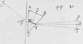 [19]Et primo notandum venit quòd imaginis istius figura secundum longitudinem suam lineis rectis terminata fuit, et secundum latitudinem duobus (ut ex visu potui judicare) semicirculis. In figura 5 sit PT