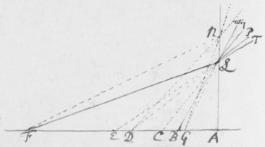 [28]Iam liquet ex præfatis quod imaginis PT latitudo semper evadit eo minor quo foramen φ longinquum factum est angustius: ut nihil dubitandum sit quin dicta latitudo prorsus evanesceret si vice foraminis istius translucidi unum duntaxat punctum ibi lucidissimum existeret. Atque istud sic futurum esse confirmatur ex observatione non dissimili quam habui quondam de stellâ Veneris. Cubiculo nempe quaquaversus obturato, excepto foramine paulo plusquam duos digitos lato, ut tenebrosissimum efficeretur. In isto foramine vitrum objectivum Perspicilli septempedalis collocavi; latitudine ejus, ad sufficientem radiorum copiam transmittendam, duos digitos et ampliùs apertâ. Deinde ad distantiam septem pedum papyro transversè positâ, in eam vidi sideris imaginem ad instar puncti lucidi projectam. Et interposito Prismate ad distantiam pedis unius duorúmve ab istâ papyro, per quod radij trajecti aliò refringerentur: pro puncto illo lucido ad distantiam indè plusquam pedalem, vidi lineolam licèt non valdè lucidam facilè conspicuam tamen; et cujus longitudo semissem digiti superavit; latitudo autem fuit quoad sensum nulla, saltem haud major quàm ut sentiretur. Atque idem credo de Stellis primæ magnitudinis, uti de Sirio, liceat observare: præsertim si lens adhibeatur quatuor vel sex digitos lata, ut plures radios transmittat.